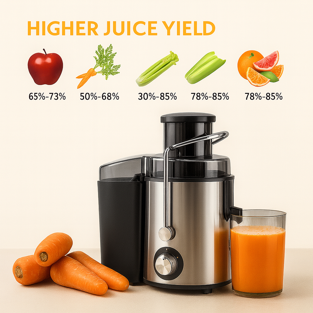 Experience juicing at its finest with our advanced extraction system that delivers maximum juice yield from every fruit and vegetable. Whether it’s crisp apples, juicy oranges, or firm carrots, the powerful motor ensures smooth, efficient, and nutrient-rich results every time. Enjoy more juice, less waste, and the pure taste of freshness in every glass. Perfect for your daily health routine and modern kitchen lifestyle.