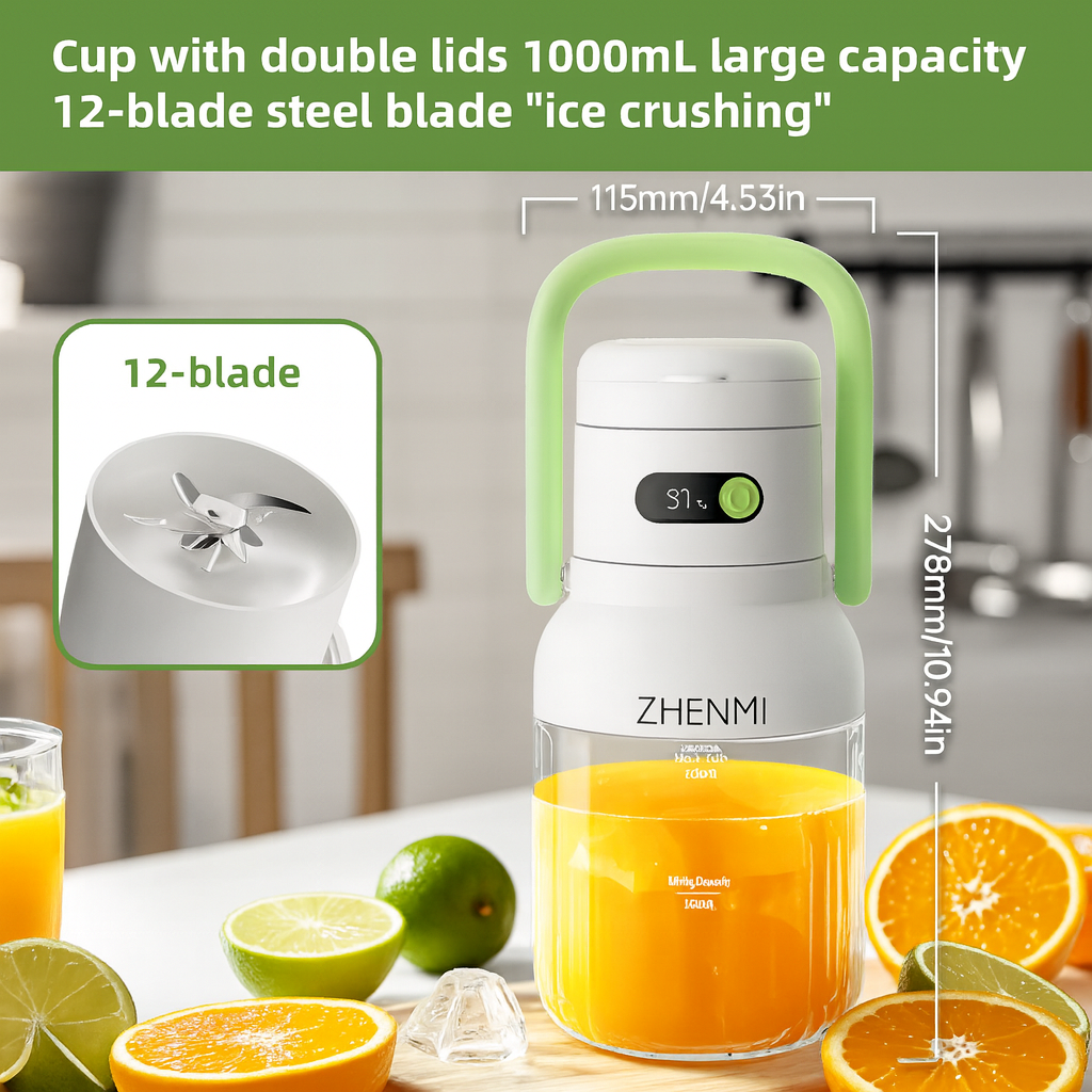 Experience next-level blending with the advanced 12-blade stainless steel system, built to handle everything from soft fruits to hard ice. Its 1000mL large-capacity cup and double-lid design make juicing and blending easier, cleaner, and more efficient. Enjoy silky-smooth textures, refreshing flavors, and the convenience of powerful performance in a compact, portable form — perfect for your daily health routine at home or on the go.